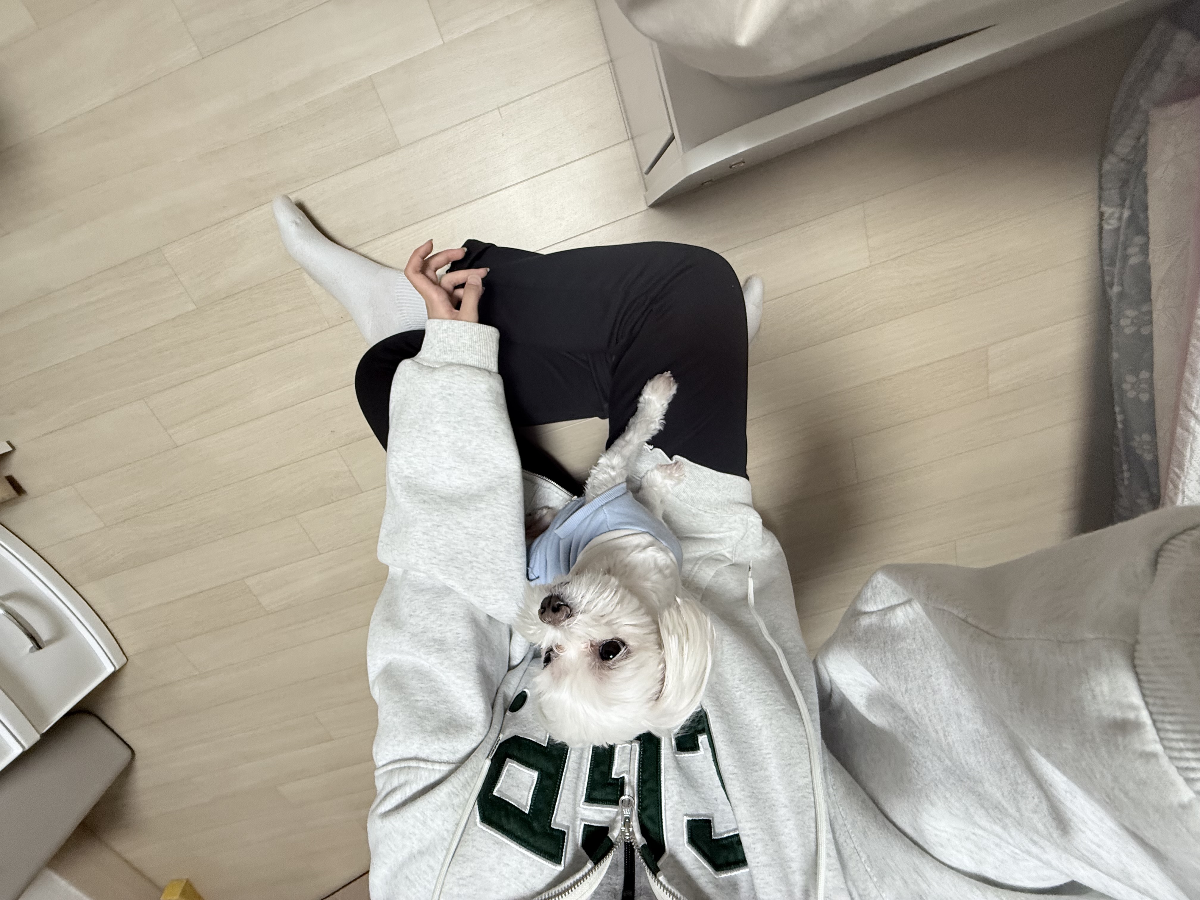 이제는 집이 어색한 공간이 아닌 두부에게 없어선 안될 가족이 있는 집으로 인식 중이랍니다~ 요즘엔 무릎강아지가 다 되어 누나 무릎에도 너무 잘 올라오고, 여전한 엄마바라기인 두부! 먹는 걸 너무나 좋아하는 먹짱 강아지로 하루하루 재밌는 하루를 보내는 중이랍니다~